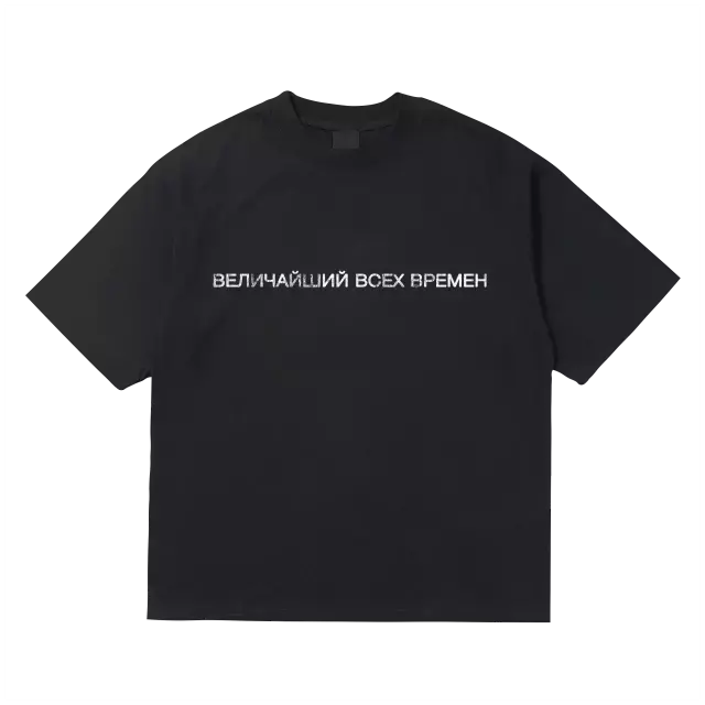 Camiseta Goat, na cor preta com a estampa em branco e vermelho.